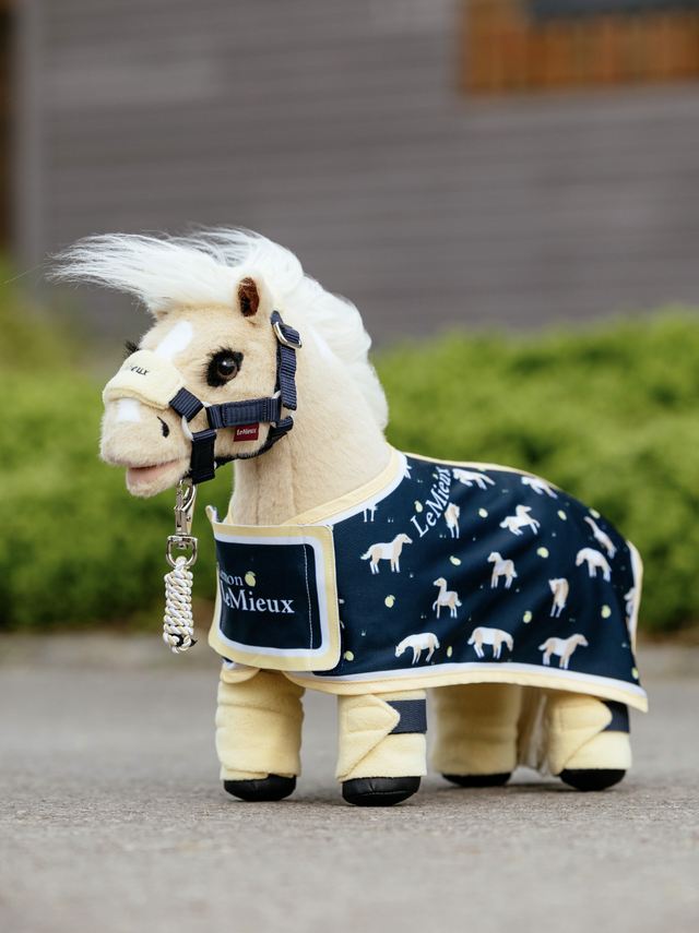 Diese Decke wurde speziell für die Toy-Pony-Version des von der Familie LeMieux adoptierten World Horse Welfare-Ponys Lemon hergestellt.